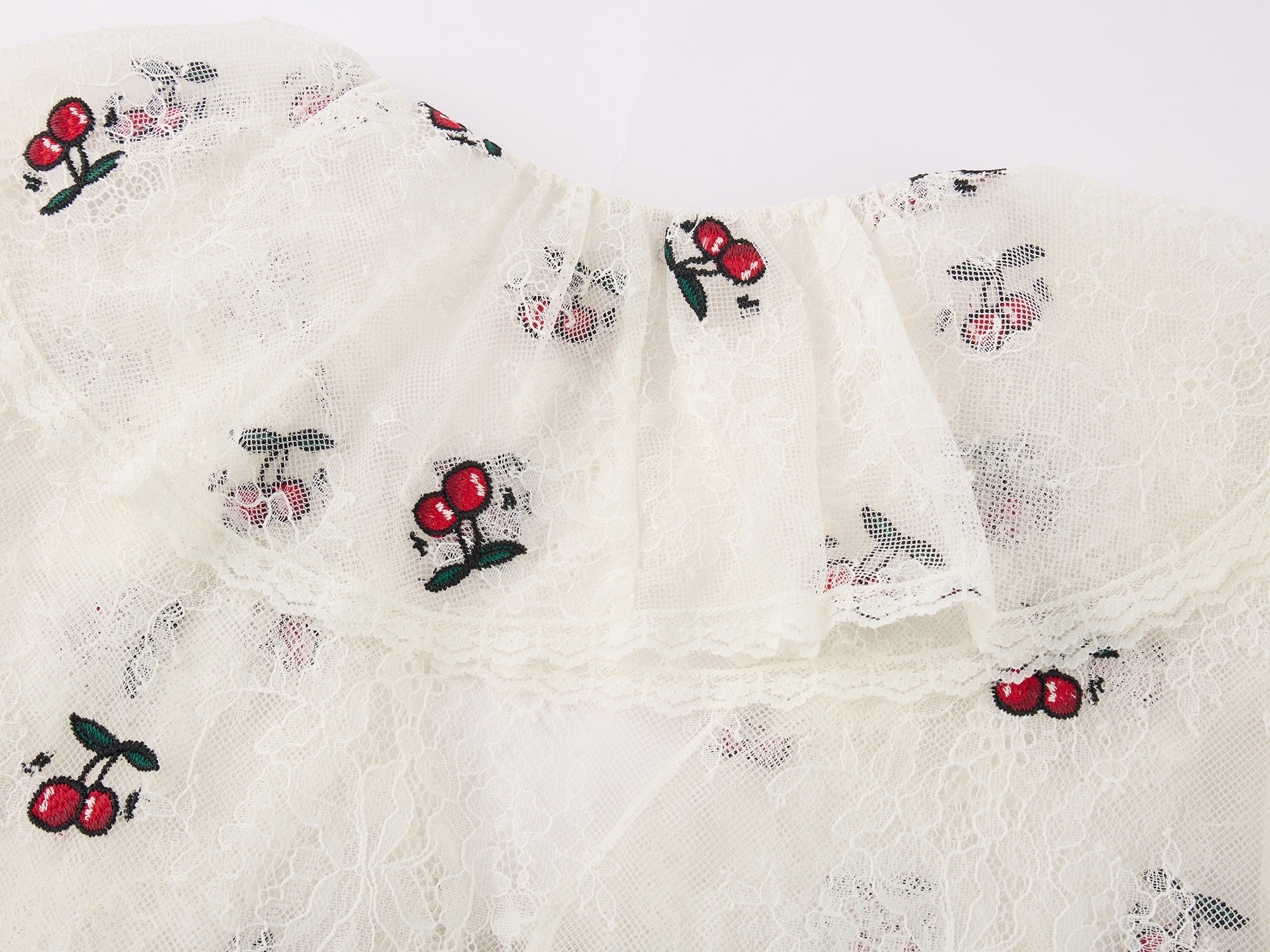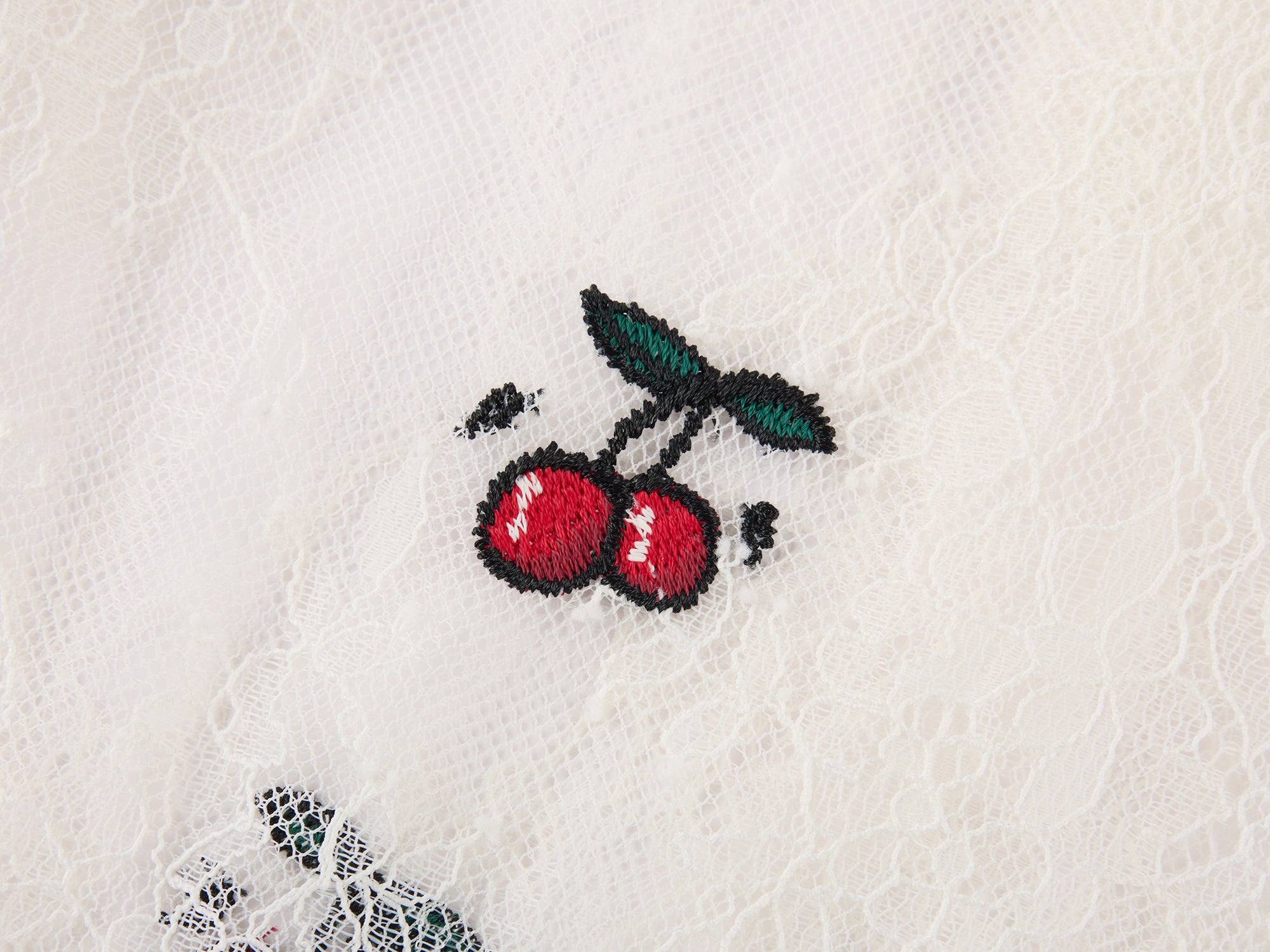 Exquisite, lightweight lace paired with layered embroidery brings the cherry pattern to life with a 3D effect, offering romance and comfort.Fabric: