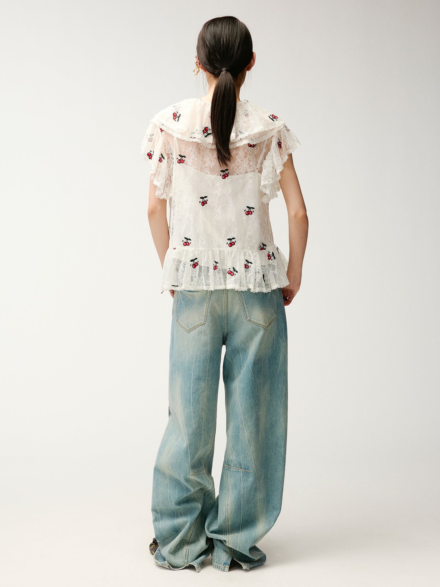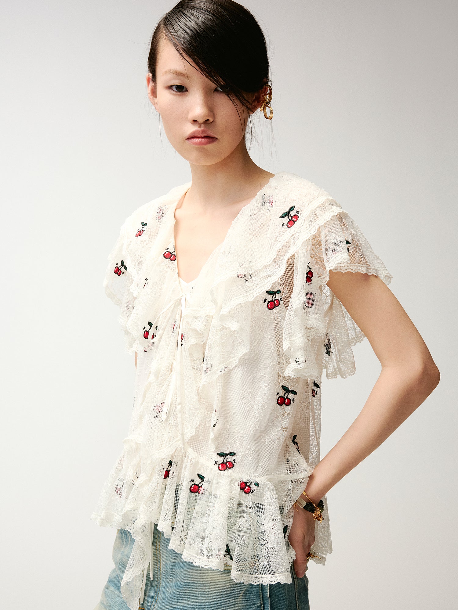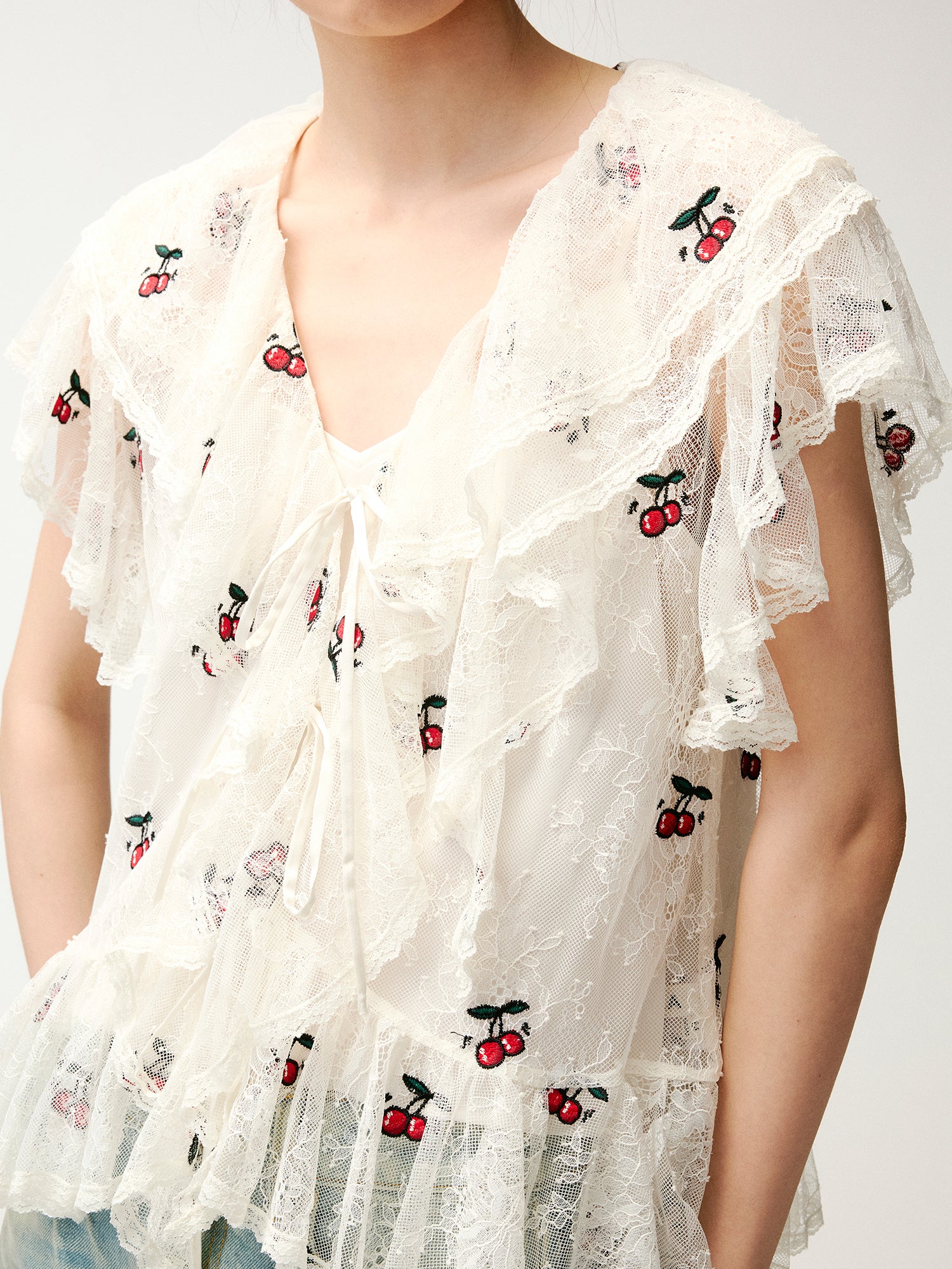 Embroidered dynamic cherry lace shirt