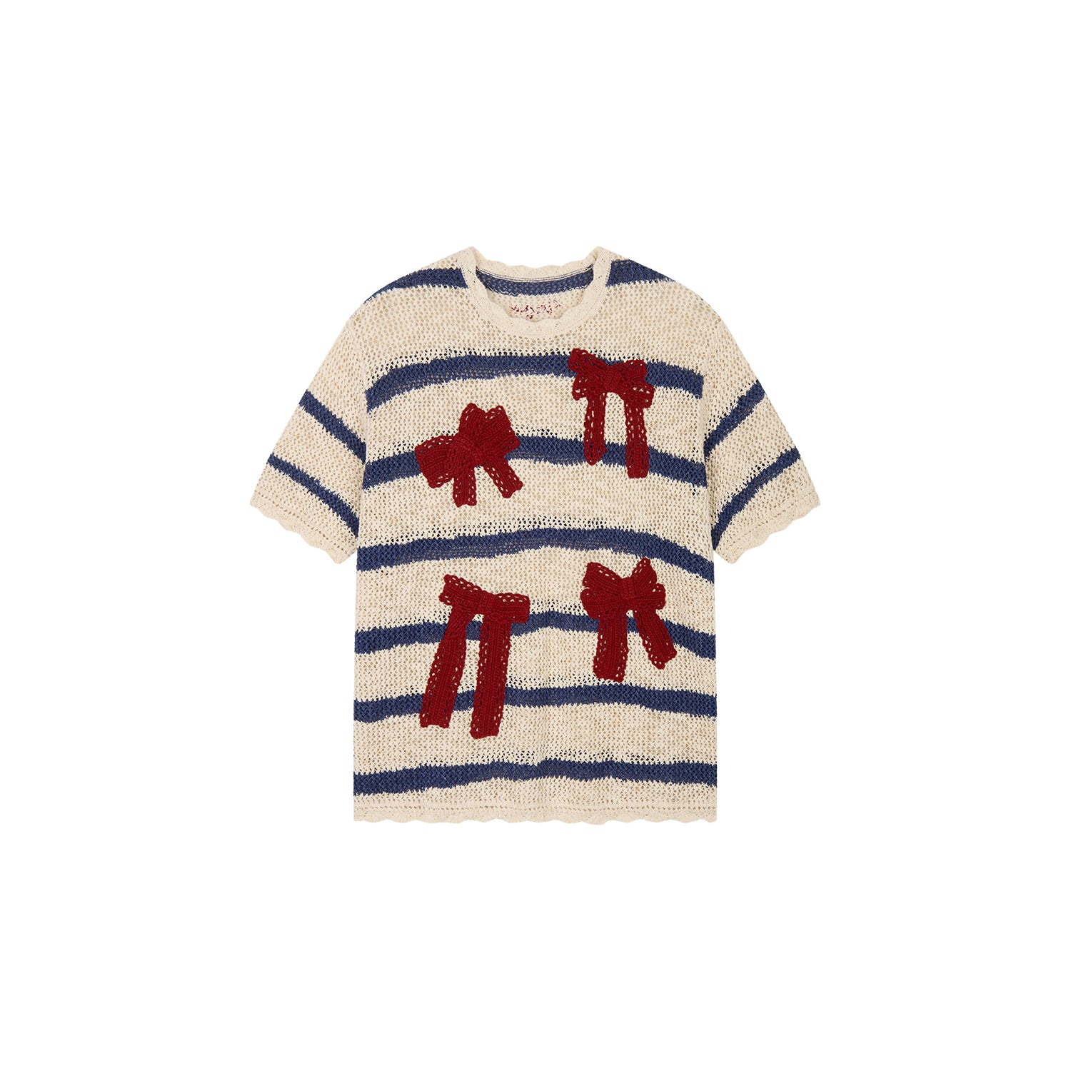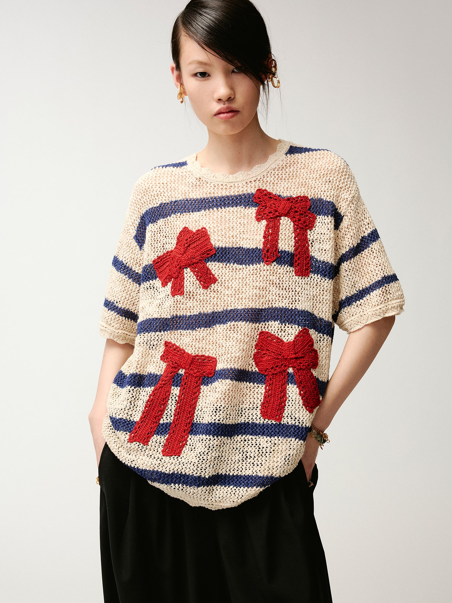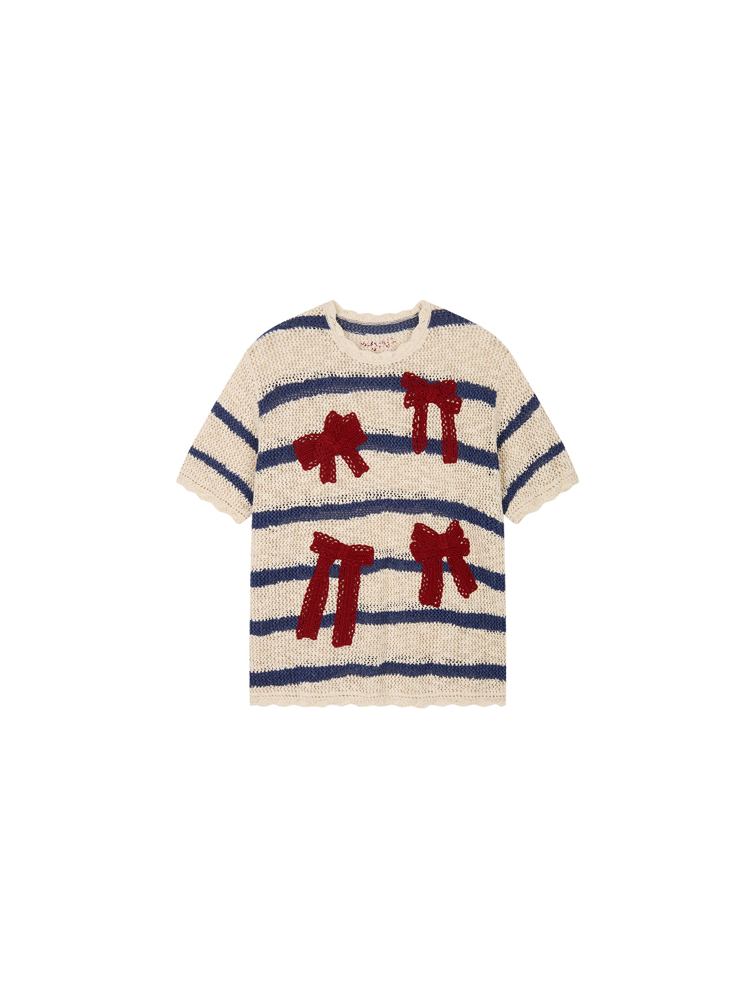 Handcrafted bow striped knit T-shirt