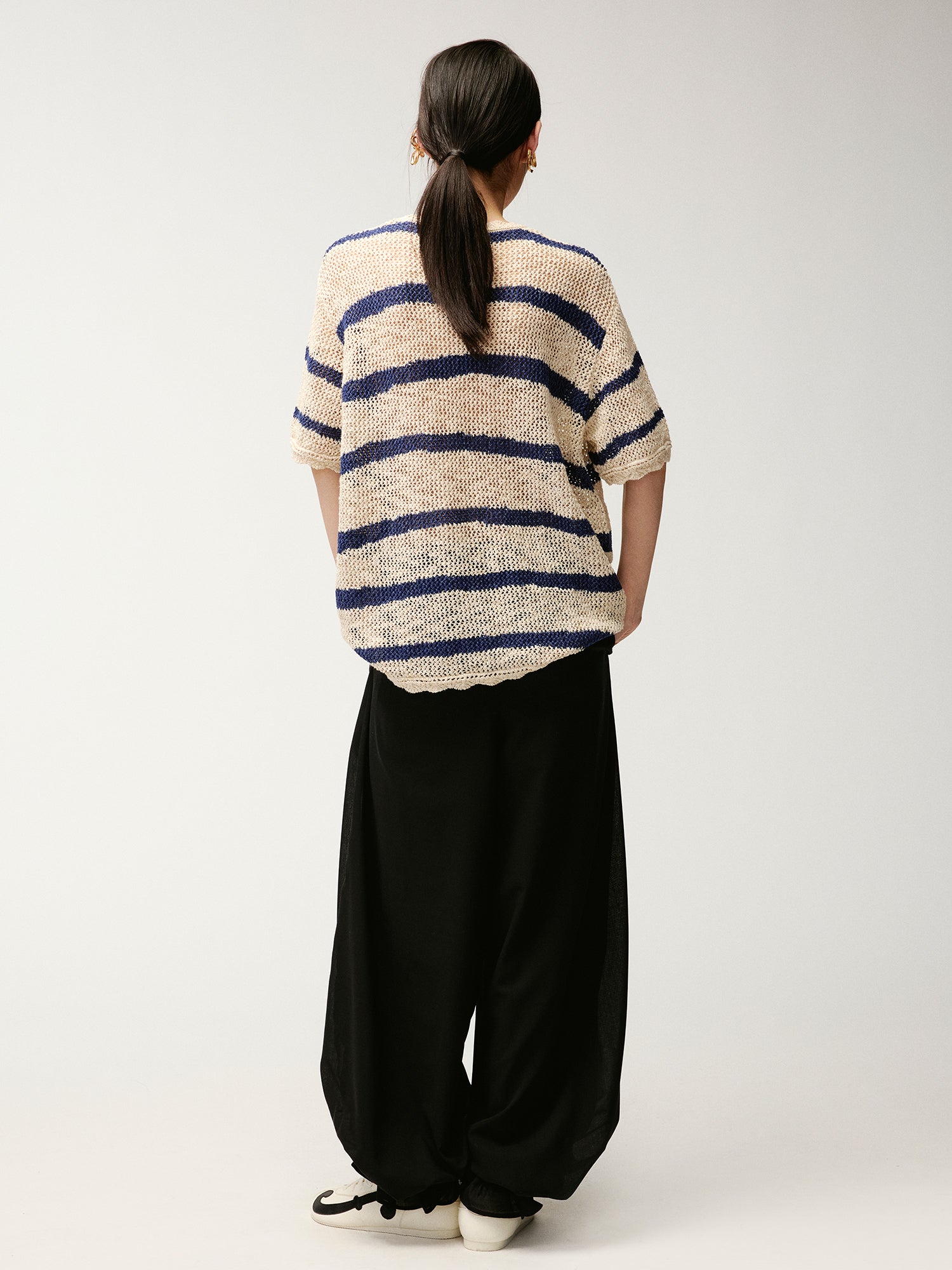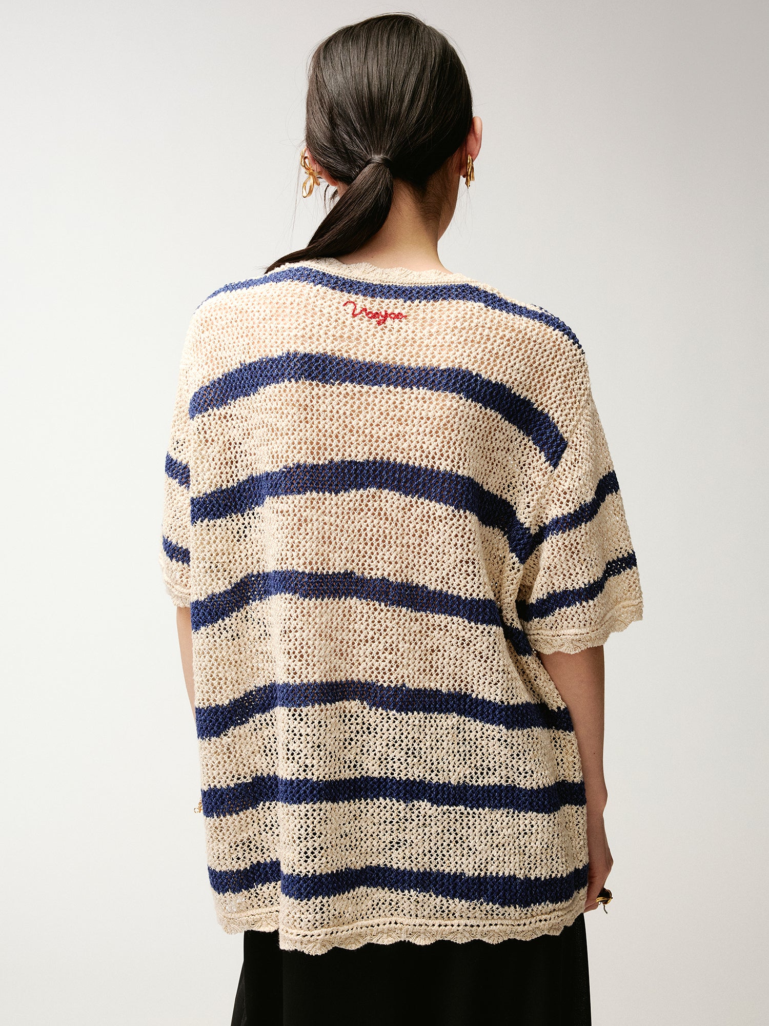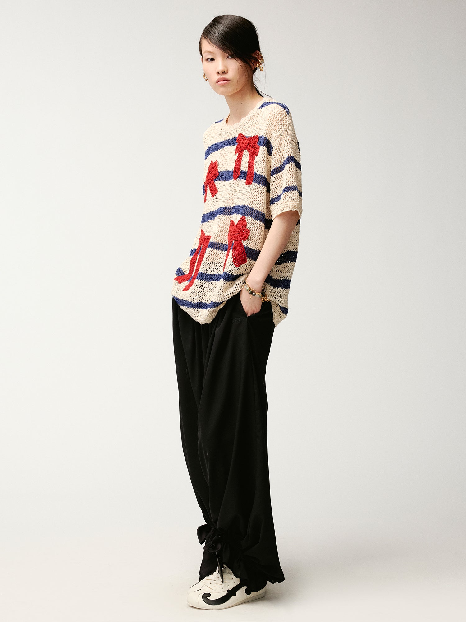 Handcrafted bow striped knit T-shirt