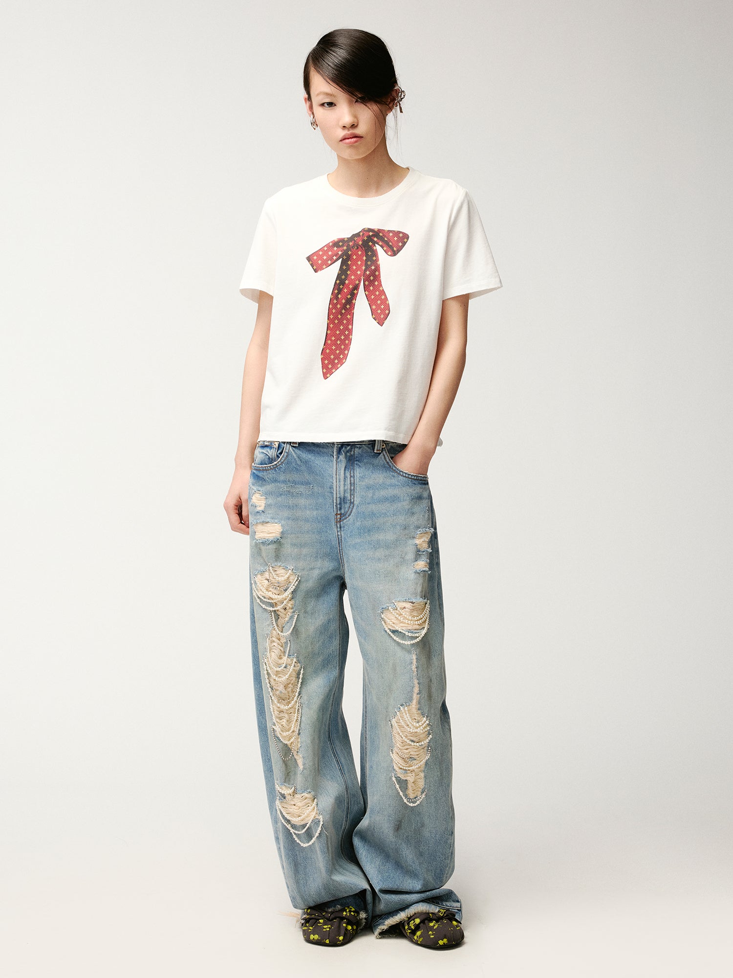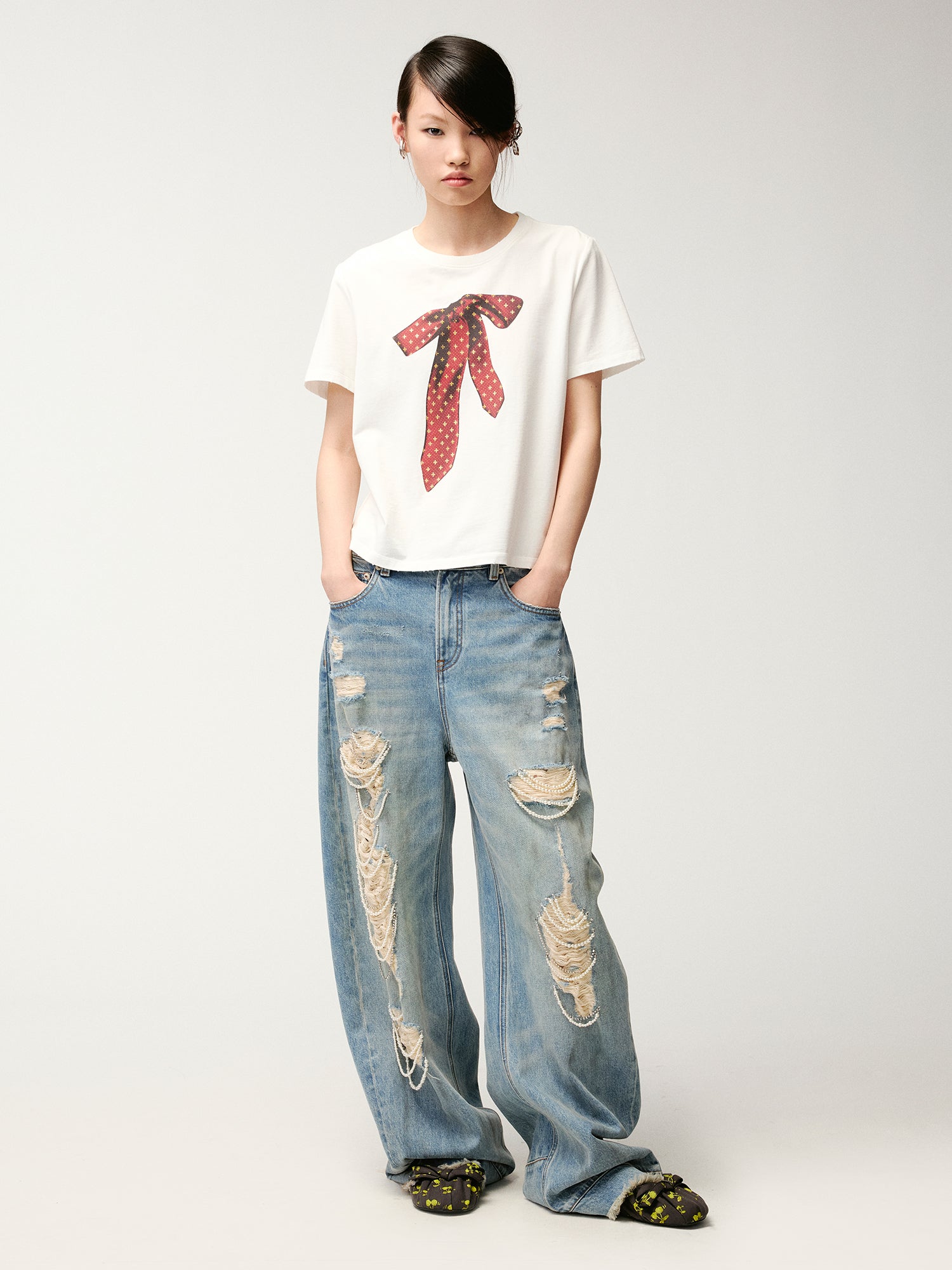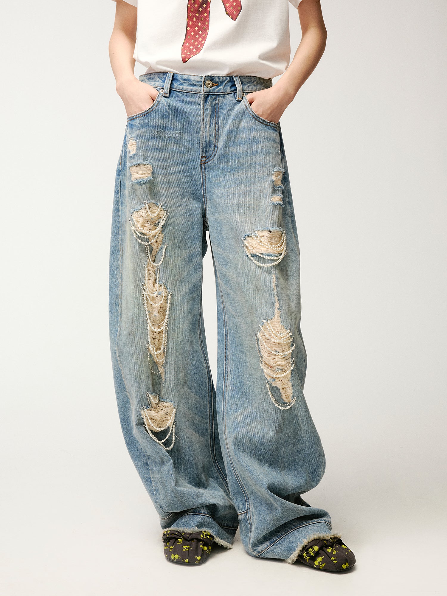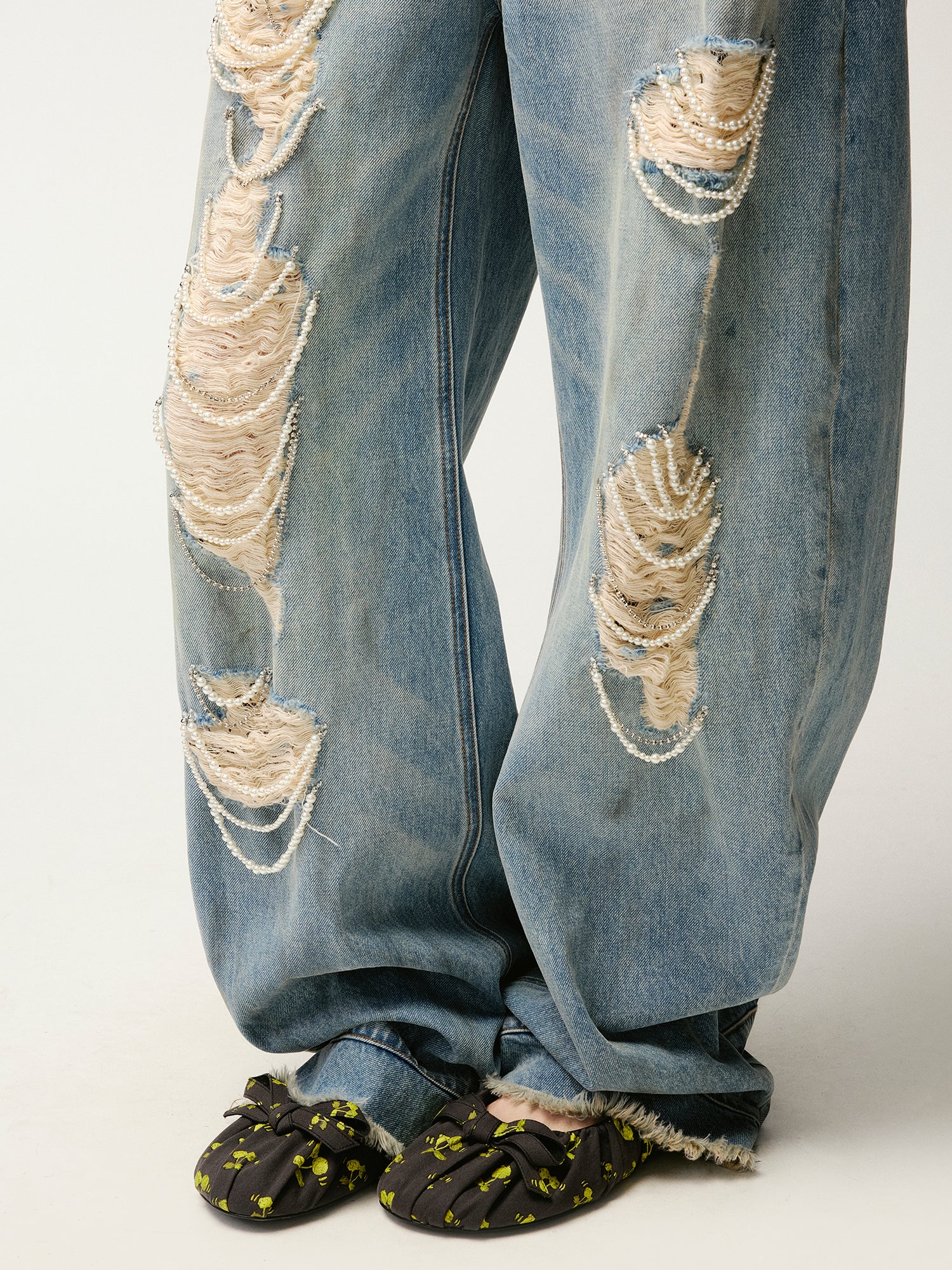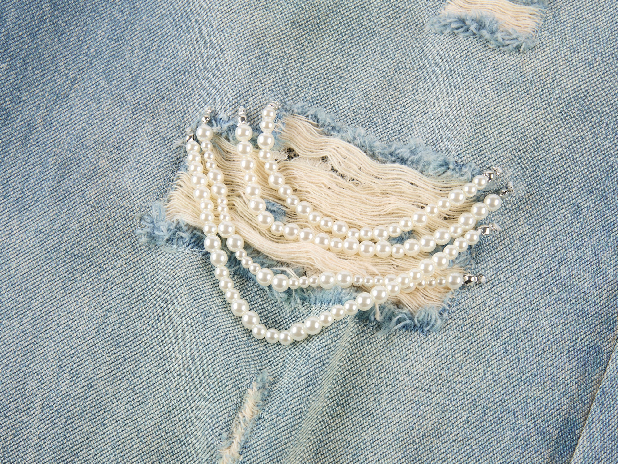Hand-beaded chains. Do not scrub, scratch, pull, or machine wash. Do not soak. Use neutral detergent.