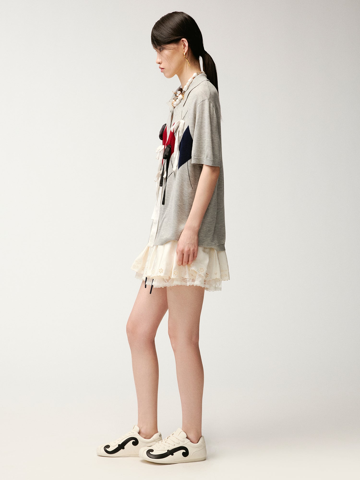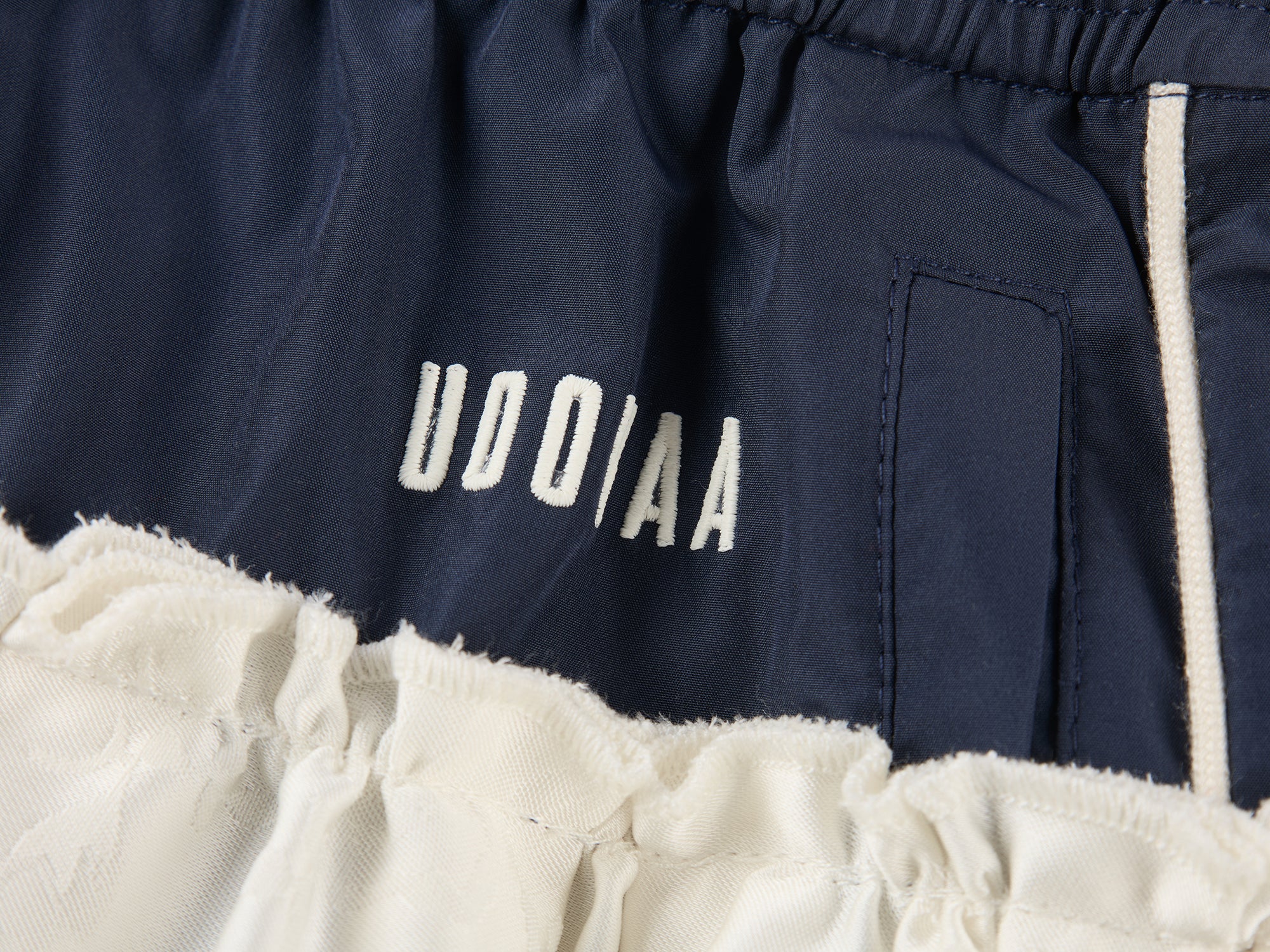 Heavy-craft laser cut and large-machine embroidery (approx. 180,000 stitches) maximize refinement.Fabric:
