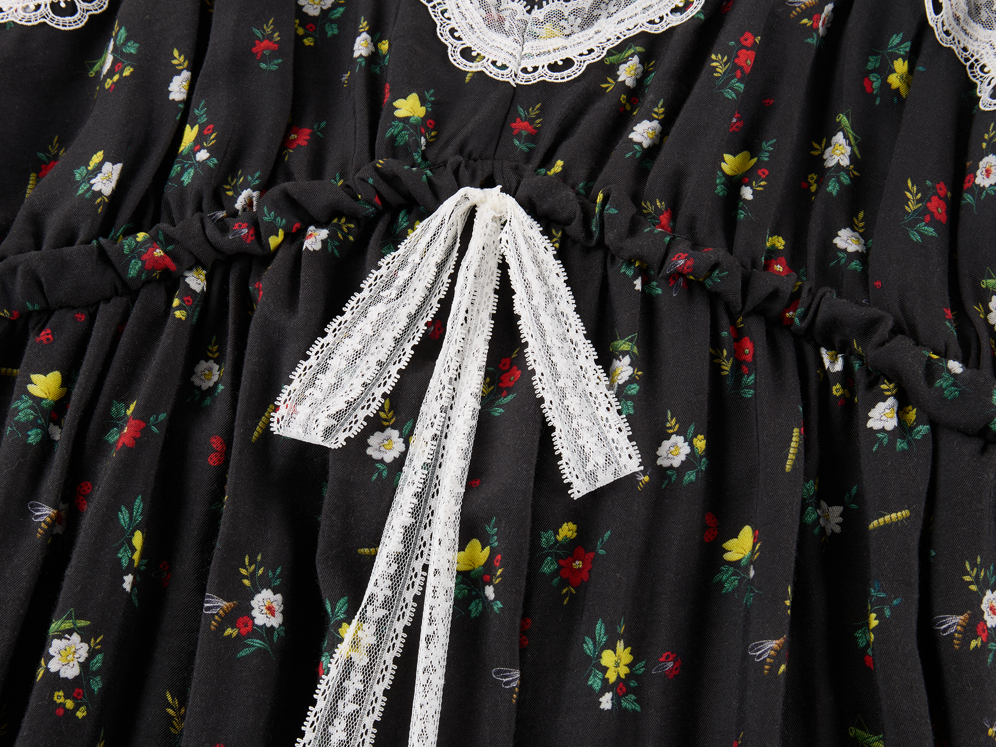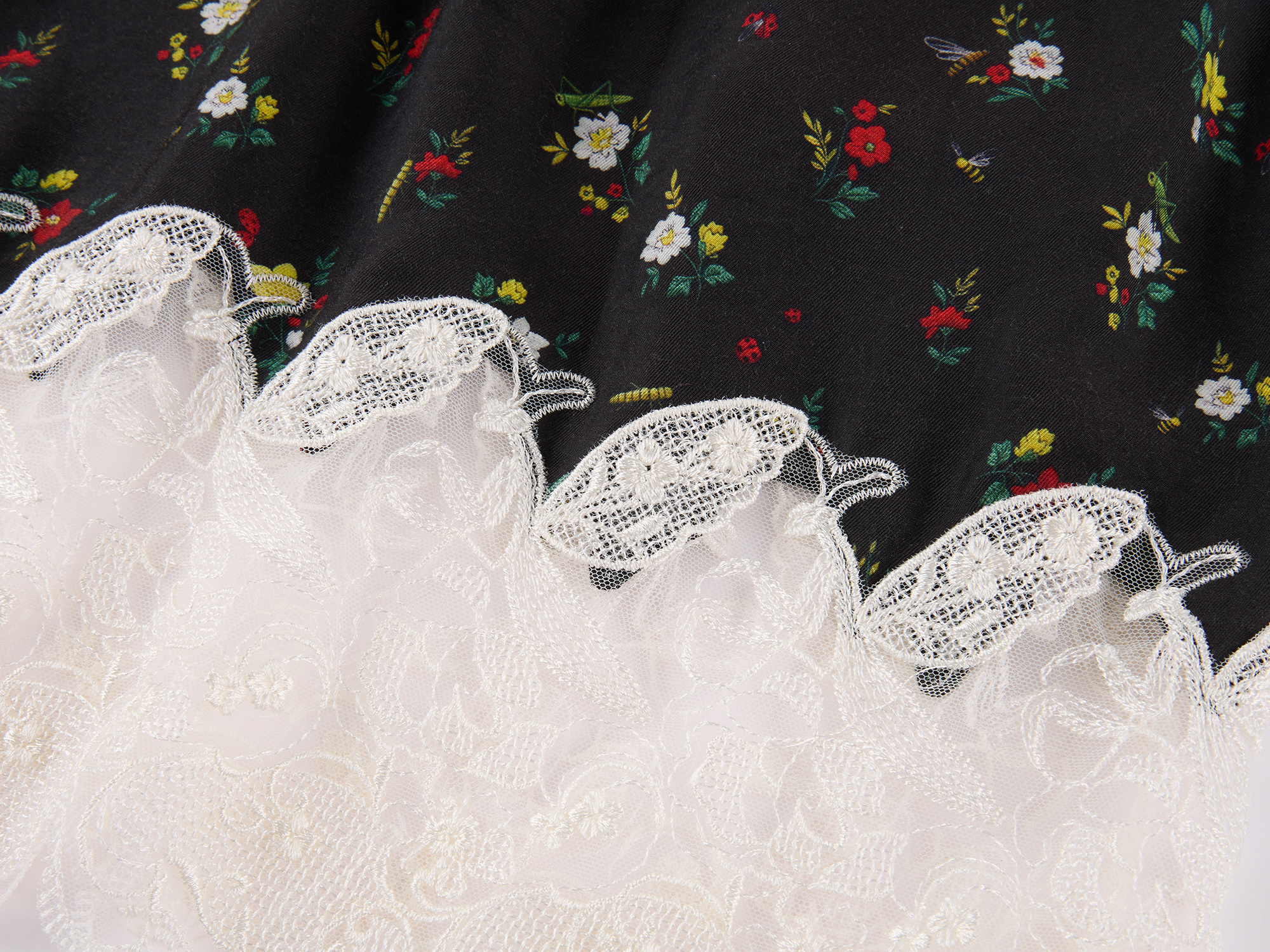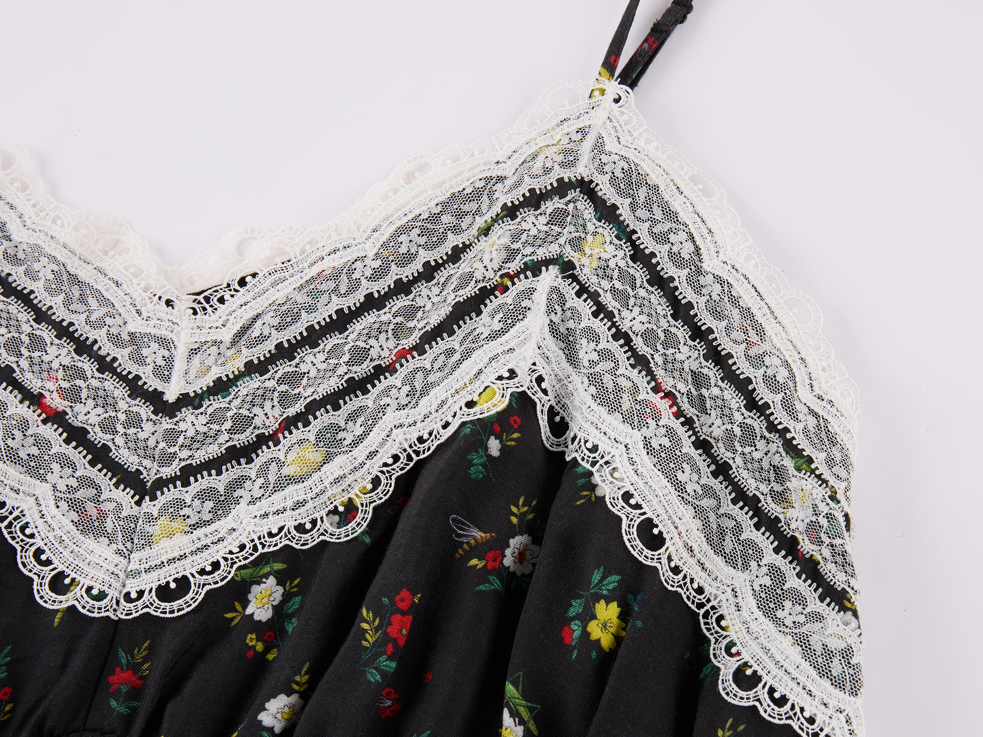 Insect and floral motif lace spliced camisole dress