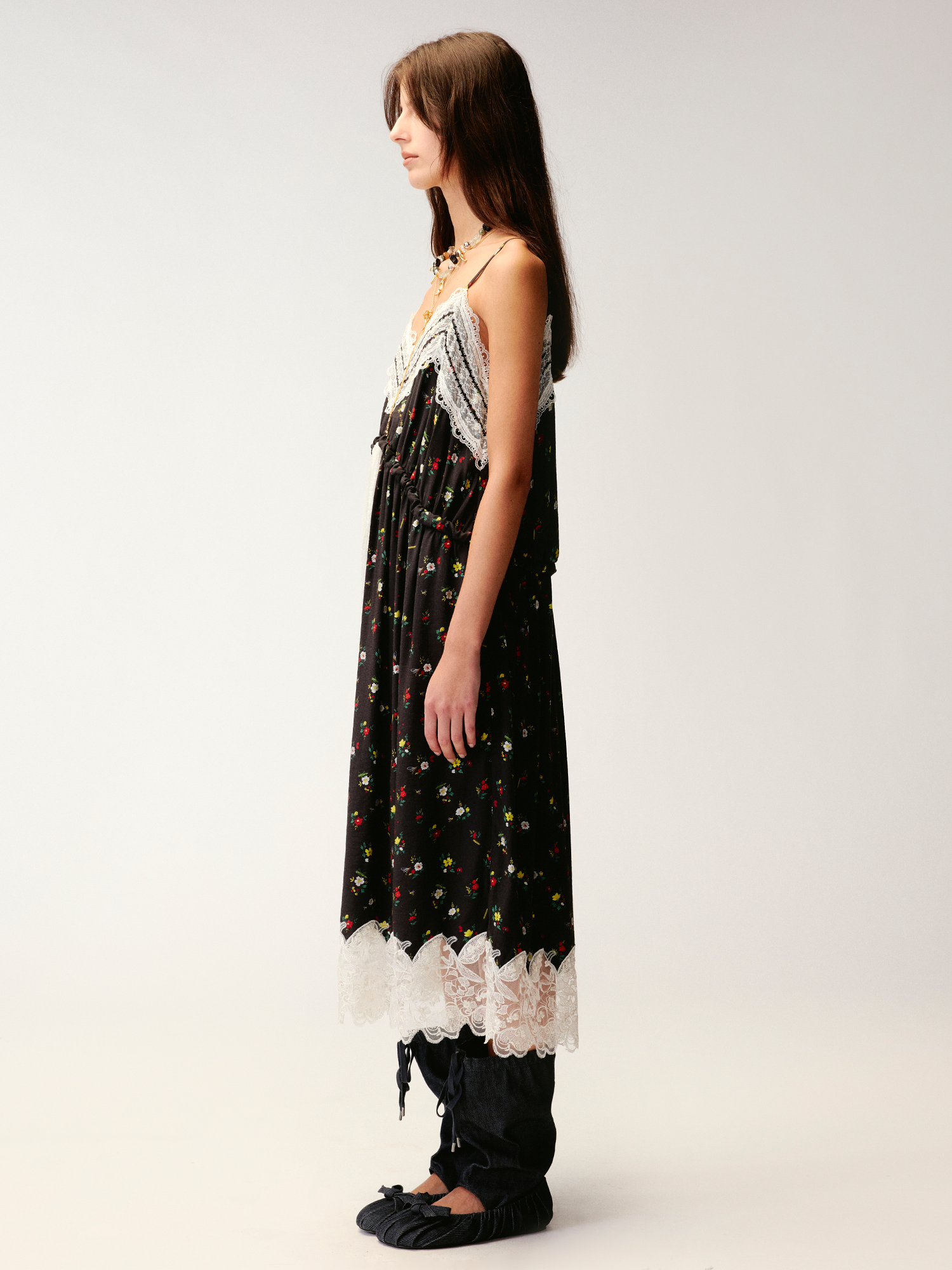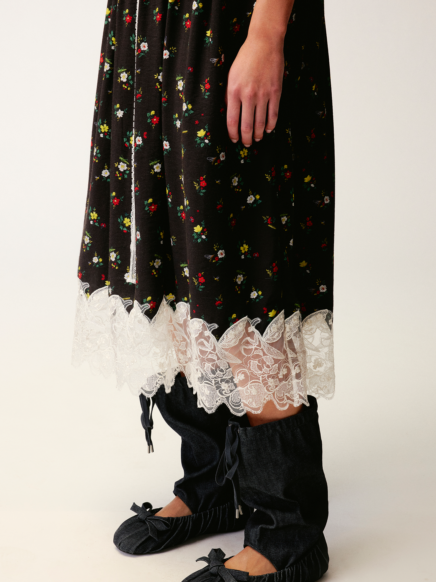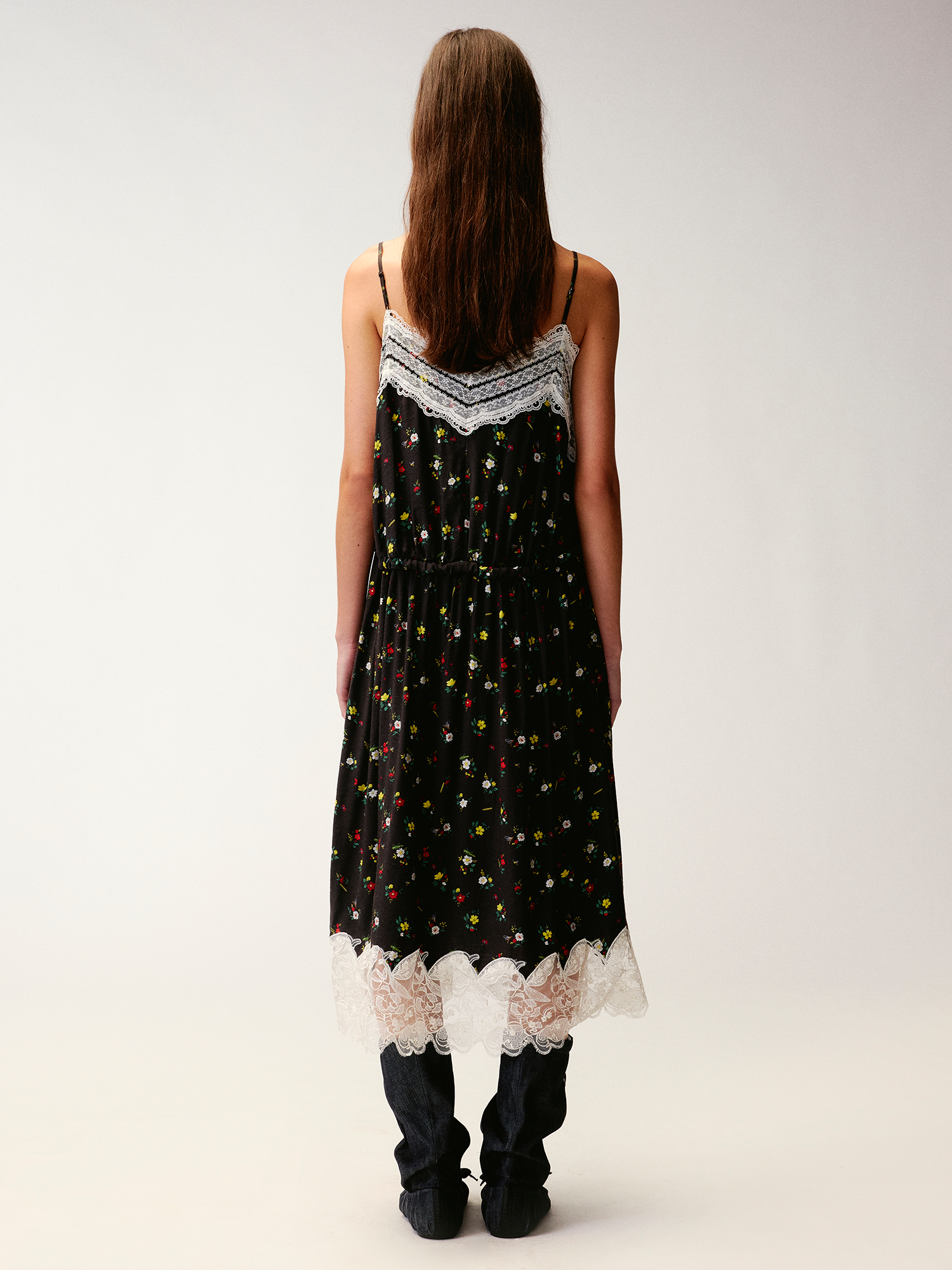 Insect and floral motif lace spliced camisole dress